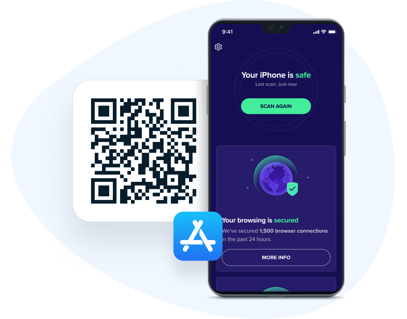 Ráadásul élvezheti egy megbízható vírusvédelmi szolgáltató által létrehozott olyan alkalmazás által nyújtott biztonságot, amely fokozza iPhone-ja vagy iOS-eszköze védelmét a kártevők és az online fenyegetések ellen.
